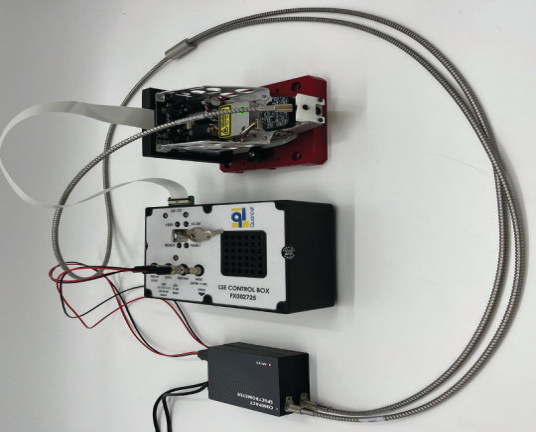 骨樣品測(cè)量實(shí)驗(yàn)系統(tǒng)(圖2)中使用一分二光纖,一端對(duì)準(zhǔn)激光光源,另一端同時(shí)連接2臺(tái)Avantes全新迷你型光譜儀:AvaSpec-NXS2048CL,其中一臺(tái)覆蓋波長(zhǎng)范圍為190-430 nm,另一臺(tái)覆蓋波長(zhǎng)范圍為360-960 nm。中間放置一個(gè)控制器,為激光器供電并同步激光脈沖和光譜儀測(cè)量。