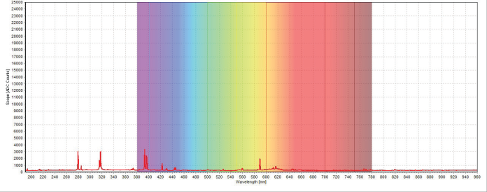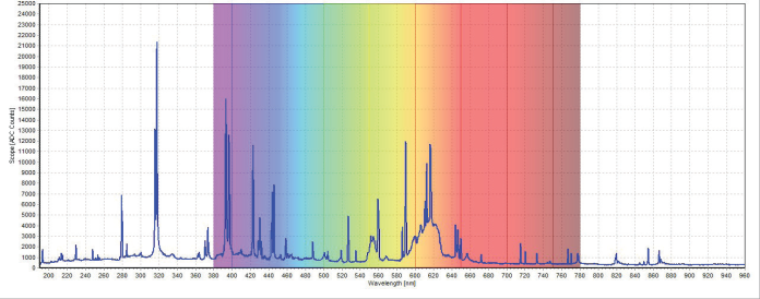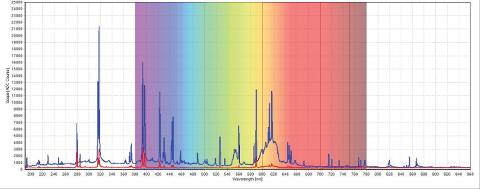 激光誘導(dǎo)擊穿光譜(LIBS)是一種原子發(fā)射光譜,它使用脈沖激光器作為激發(fā)源。激光脈沖聚焦到被測(cè)物體的表面,使被測(cè)材料表面的激光功率密度升高至一定程度。在如此之高的激光功率密度作用下,被測(cè)材料表面會(huì)有幾微克的物質(zhì)噴射出來,同時(shí)材料表面還會(huì)產(chǎn)生壽命很短但亮度很高的等離子體,其瞬間溫度可達(dá)10,000 攝氏度 。冷卻過程中,處于激發(fā)態(tài)的原子和離子從高能態(tài)躍遷至低能態(tài),此時(shí)不同元素會(huì)發(fā)射出其特定波長(zhǎng)的光,在光譜圖中可以直接觀測(cè)到代表各元素波長(zhǎng)的峰,從而揭示了樣品的組成。
