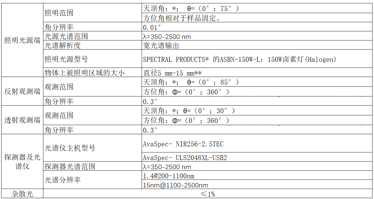 雙向反射分布函數(shù)(Bidirectional Reflectance Distribution Function)表示了不同入射角條件下物體表面在任意觀測角的反射特性,對于研究物質(zhì)、材料的基礎物理特性和應用前景有著重要的意義。但是這一分布函數(shù)的測量存在著角度定位精度要求高,測量點多,測試數(shù)據(jù)量大的難點,單純由手動操作難以完成。荷蘭Avantes公司研發(fā)了雙向反射分布函數(shù)測量系統(tǒng),集成大功率鹵鎢燈照明系統(tǒng)、雙通道光纖光譜儀探測系統(tǒng)、測量機械系統(tǒng)和控制系統(tǒng)。