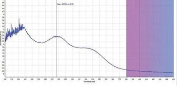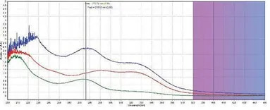 PART02 實驗結果 圖3:普通咖啡樣品的吸光度光譜 (咖啡因吸光度峰在276.03 nm處) 圖4:低因咖啡樣品的吸光度光譜 (無咖啡因吸光度峰存在) 圖5:含咖啡因果汁樣品的吸光度光譜 (咖啡因吸光度峰在273.50 nm處) 正如預期的那樣,普通咖啡和含咖啡因的果汁都在紫外區(qū)域出現(xiàn)了吸光度峰,并與文獻資料中的咖啡因吸光度峰(約273 nm)相匹配。普通咖啡樣品在276.03 nm處出現(xiàn)吸光度峰(圖3)。低因咖啡樣品沒有顯示出咖啡因對應的吸光度峰,而是在290-320 nm處出現(xiàn)淺峰 (圖4)。含咖啡因的果汁樣品也在273.50 nm處出現(xiàn)吸光度峰(圖5)。 圖6:普通咖啡(藍色)低因咖啡(紅色) 含咖啡因果汁(綠色)的吸光度光譜圖 結果分析 所有樣品的吸光度光譜如圖6所示。 比較三個樣品,很明顯,普通咖啡樣品和含咖啡因的果汁樣品都出現(xiàn)了咖啡因對應的吸光度峰。有趣的是,果汁宣傳自己的咖啡因含量(每8盎司80毫克)幾乎與普通咖啡(每8盎司90毫克)一樣多,但普通咖啡樣品的吸光度值明顯高于含咖啡因的果汁樣品。另外,普通咖啡樣品中吸光度峰位于波長276.03 nm,略大于資料所給出的約273nm的咖啡因吸光度峰。 PART03 總結 本實驗利用紫外吸收光譜法分別檢測了普通咖啡,低因咖啡和含咖啡因果汁樣品中的咖啡因。通過對比普通咖啡和低因咖啡的吸光度光譜可以發(fā)現(xiàn)低因咖啡不含紫外區(qū)域范圍內可檢測的咖啡因,這一結果與事實相吻合。